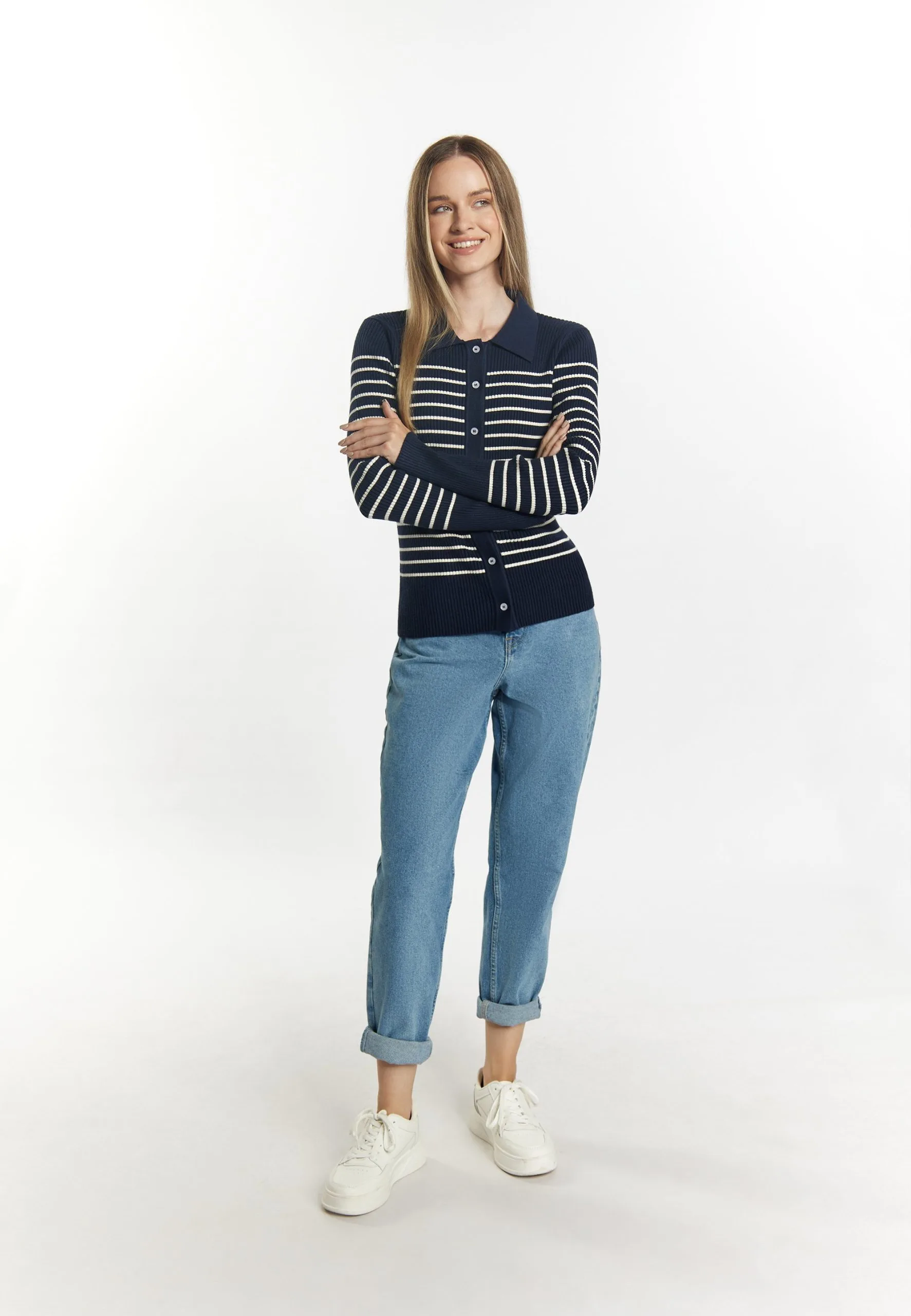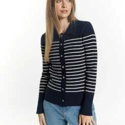 Dreimaster BoundryCardiganMarine Wollweiss Donna Maglieria 4DR21I0EE-K11